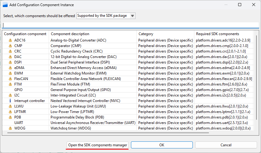 'Open the SDK ...' 버튼을 클릭하여