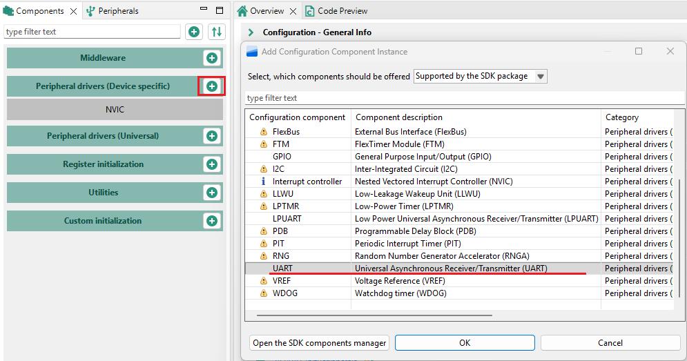그리고 Drivers에 UART 모듈을 추가합니다.![]()