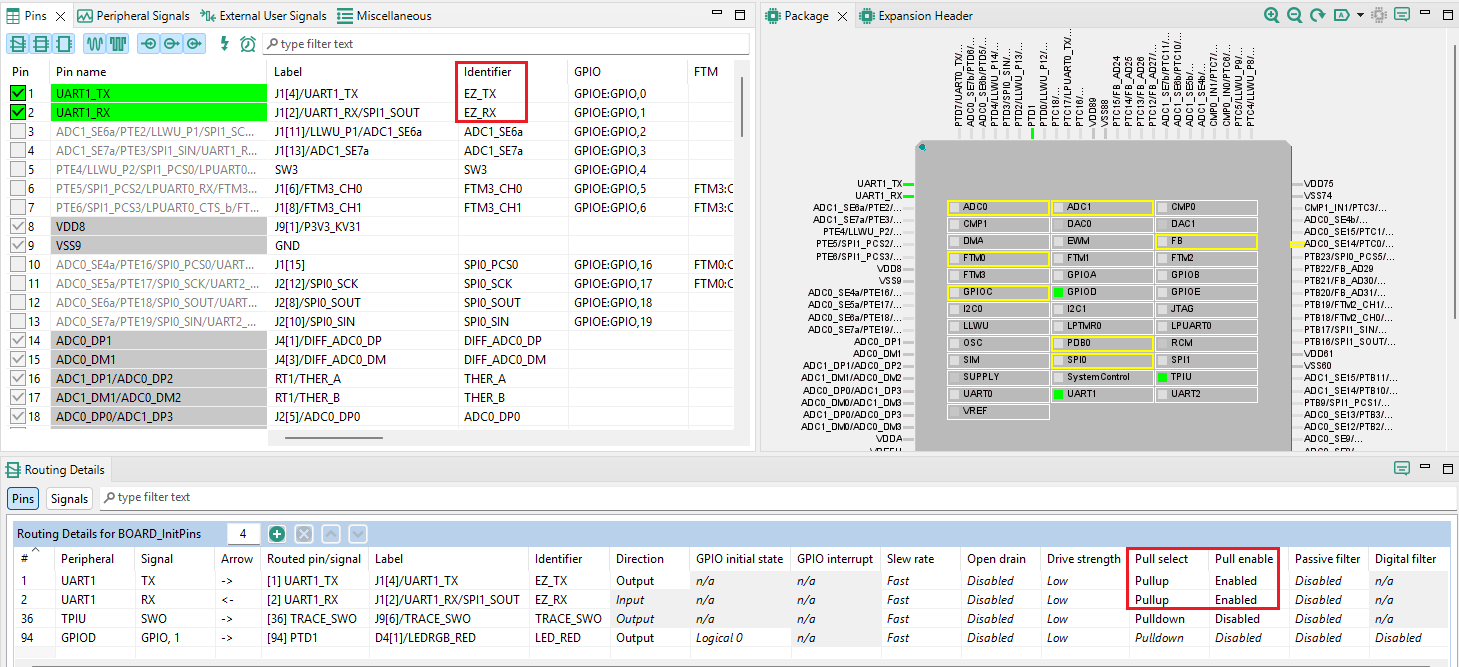 TX, RX 핀의 Identifier에 각각 EZ_TX, EZ_RX를 입력합니다.