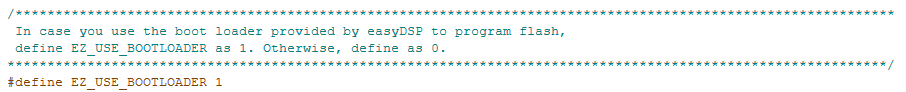 만약 easyDSP 제공 부트로더를 사용하여 플래시 프로그래밍을 수행할 경우, easyKinetisV.h 파일의 아래 부분에서 EZ_USE_BOOTLOADER를 1로 설정하세요. 아니라면 0으로 설정합니다.![]()