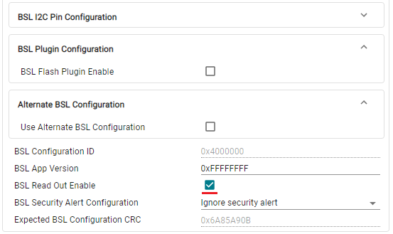 Enable BSL Invoke Pin Check는 활성화하고,