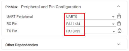 다음은 UART 관련 설정입니다. 이름은 MSPM0, MSPM33 관계없이 UART_0으로 설정합니다.