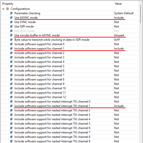 Circular 버퍼를 사용하지 않는다면 'Use disable interrupt to protect queue' 값을 Unused로 설정합니다. Circular buffer 사용시 'Used'로 설정합니다.